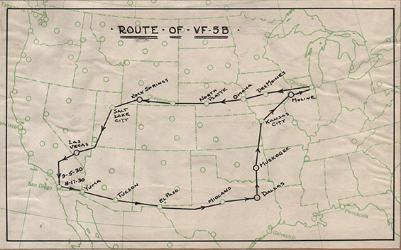 We also know approximately what his flight itinerary was by following along with the news articles and photographs of this scrapbook. You may download the full scrapbook at the link above. News articles from El Paso and Dallas, TX, Kansas City, MO and Cleveland, OH nicely documented their route and provided a snapshot of their lives on the ground at these and other waypoints. As well, Choureé's own sketch of the route of flight taken by his Navy entourage was pasted inside the cover of this scrapbook, below. The zig-zag in Missouri on the return trip was due to bad weather (see below).