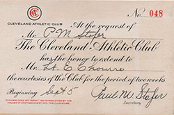 In all, 36 pilots represented the Navy, as cited in a news article in Choureé's scrapbook. And, "Lieut. Emile Choureé is here from San Diego to do the radio and public address announcing for navy maneuvers at the races." As a VIP, Choureé was afforded some perks, such as the pass for the Cleveland Athletic Club, left. Not to look a gift horse in the mouth, but the NAR ended on September 7th.
