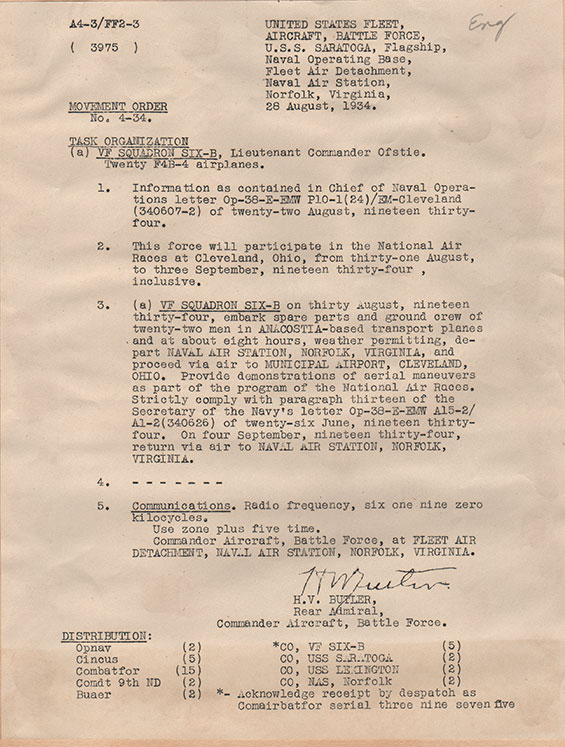 Orders, Register Pilot R.A. Ofstie, Commanding VF-6B