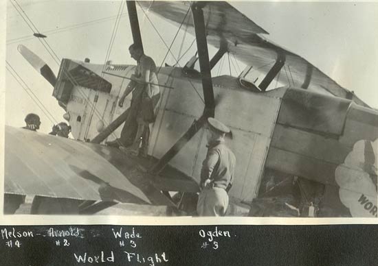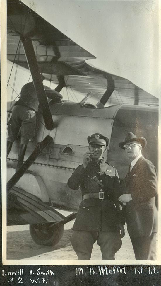 In the image below, Moffett is the officer with the cigarette. He was the pilot for the advance aircraft for the First World Flight (see image RTW-6)