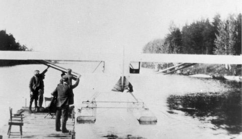 To show what a workhorse the airplane was, the following photograph from the San Diego Air & Space Museum shows it with two canoes strapped to the sides.