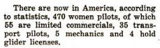 Note the breakout of numbers of female pilots. Curiously, the same issue of Popular Aviation cited women's number as at right. There are slight discrepancies.
