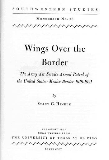 Preceding the U.S. Border Patrol was the Army Air Service Armed Patrol over the Mexico Border. The monograph, left, provides the history of the 1st Surveillance Group that was charged with the responsibility of border security before the national Border Patrol was established.