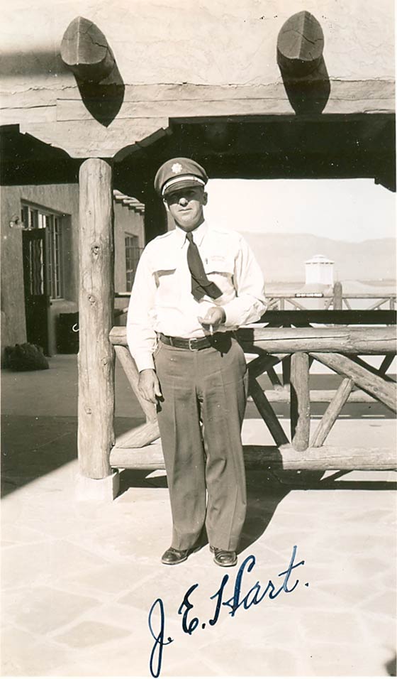 Portrait, left, courtesy of site visitor John Lyon. Mr. Lyon states about the image, "[Hart is] wearing a 'Varney Air Transport' cap. This was one of the several air lines started by Walter Varney. Hart is standing in front of a fuselage which, from the shape of the window, appears to be a [Lockheed] Vega, which Varney flew. The line was the predecessor of Continental Air Lines, which may explain why Hart lived in Denver when he died in 1949."