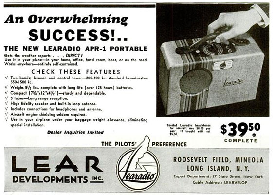 Lear Portable Radio, Popular Aviation Magazine, July, 1939 (Source: PA)