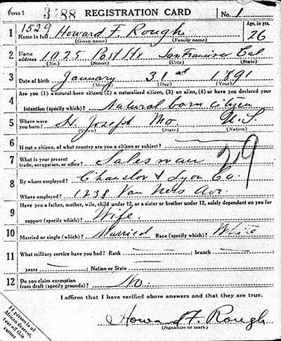 H.F. Rough, WWII Draft Registration, April 7, 1942 (Source: ancestry.com)