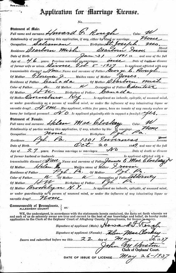Helen and Howard Marriage License, May 26, 1937 (Source: ancestry.com)