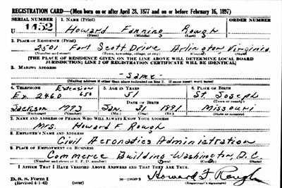 On April 7, 1942 at age 51, Rough was registered for the WWII draft. His address was Arlington, VA just south of Washington,DC, and his employer was listed as the Civil Aeronautics Administration, below.